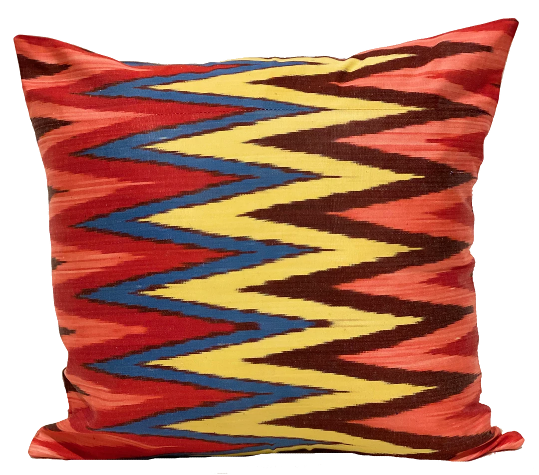 The Ikat cushions are produced in very limited editions. Sourced in remote areas of Central Asia and Uzbekistan, these centuriesâ old textile designs have their own language and stories are told using color, weave and pattern. Â Each fabric is hand loomed in Uzbekistan for two months, after which the pillows are made in Istanbul, Turkey.