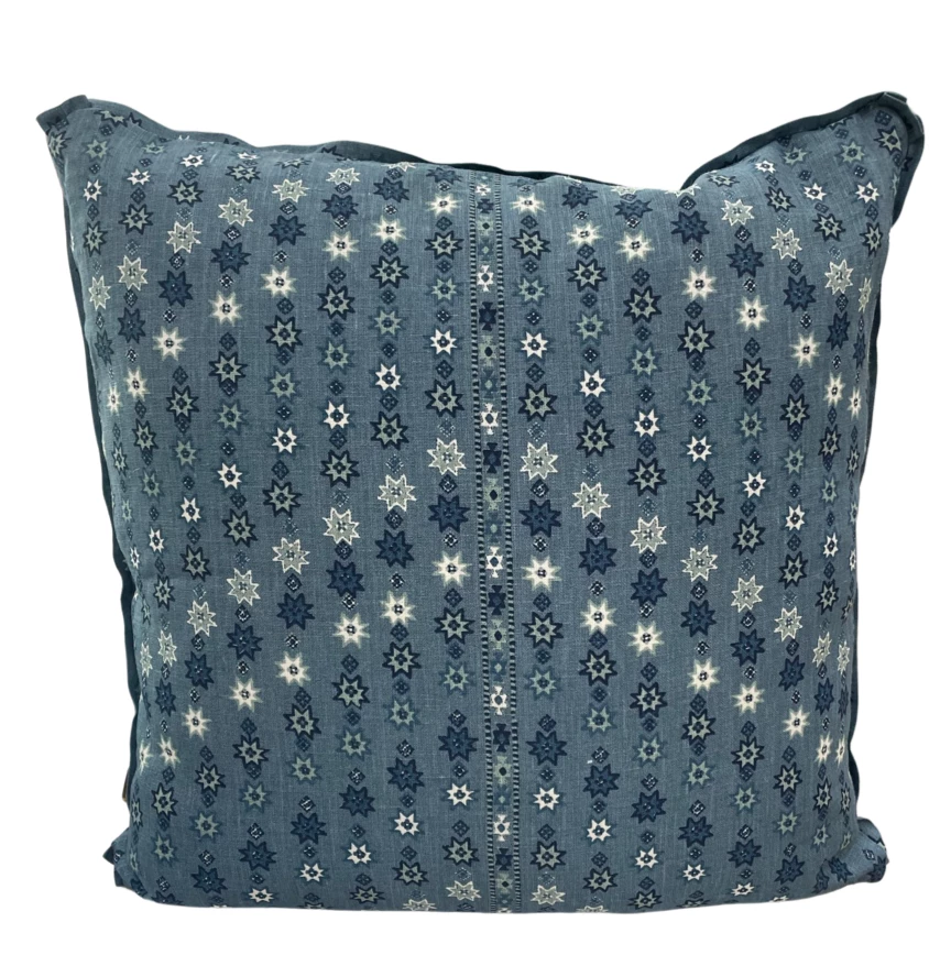 Peter Dunham’s signature style weaves the classic structure and European sensibility of his upbringing with casual, California elegance. Inspired by his travels through India, Turkey and the Mediterranean. This pattern is hand printed on the finest linen. Meticulously finished with a flat flange construction. We recommend purchasing our WMH Premium Feather and Down insert that is 1″ larger than the cover.