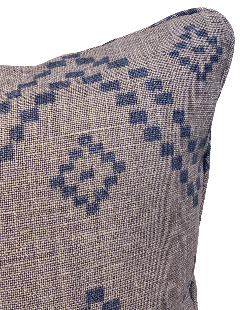 Peter Dunham’s signature style weaves the classic structure and European sensibility of his upbringing with casual, California elegance. Inspired by his travels through India, Turkey and the Mediterranean, this pattern is hand printed on the finest linen. We recommend purchasing our WMH Premium Feather and Down insert that is 1″ larger than the cover.