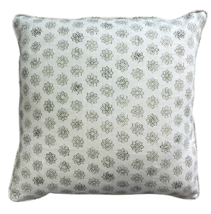 Schuyler Samperton’s fabric designs are inspired by everything from centuries-old textile documents to the vibrant Indian patterns found in her mother’s scarves and her father’s pocket squares. Screen printed by on 100% linen. Meticulously finished with a contrast welt. We recommend purchasing our WMH Premium Feather and Down insert that is 1″ larger than the cover.