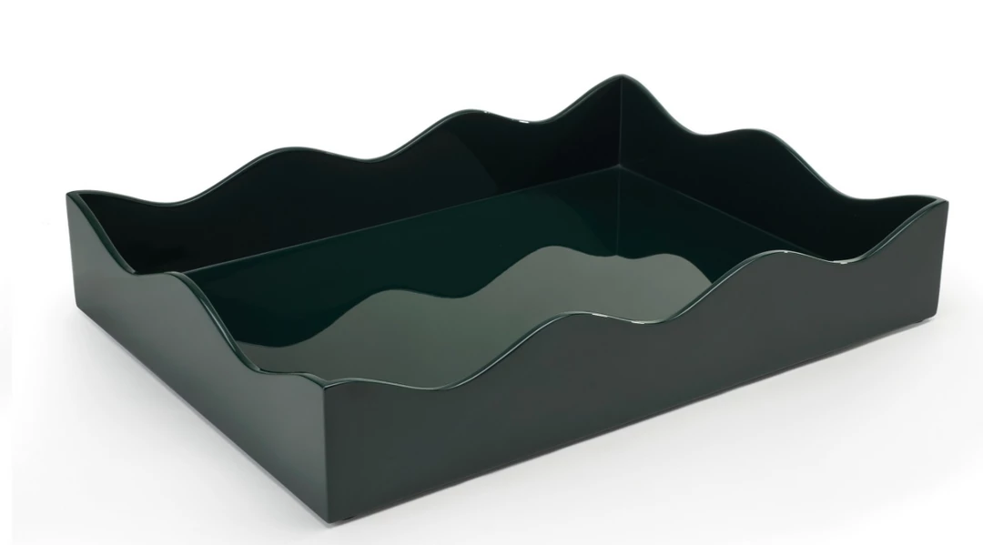 The Lacquer Company handmade high gloss lacquer tray with wavy edge.Â