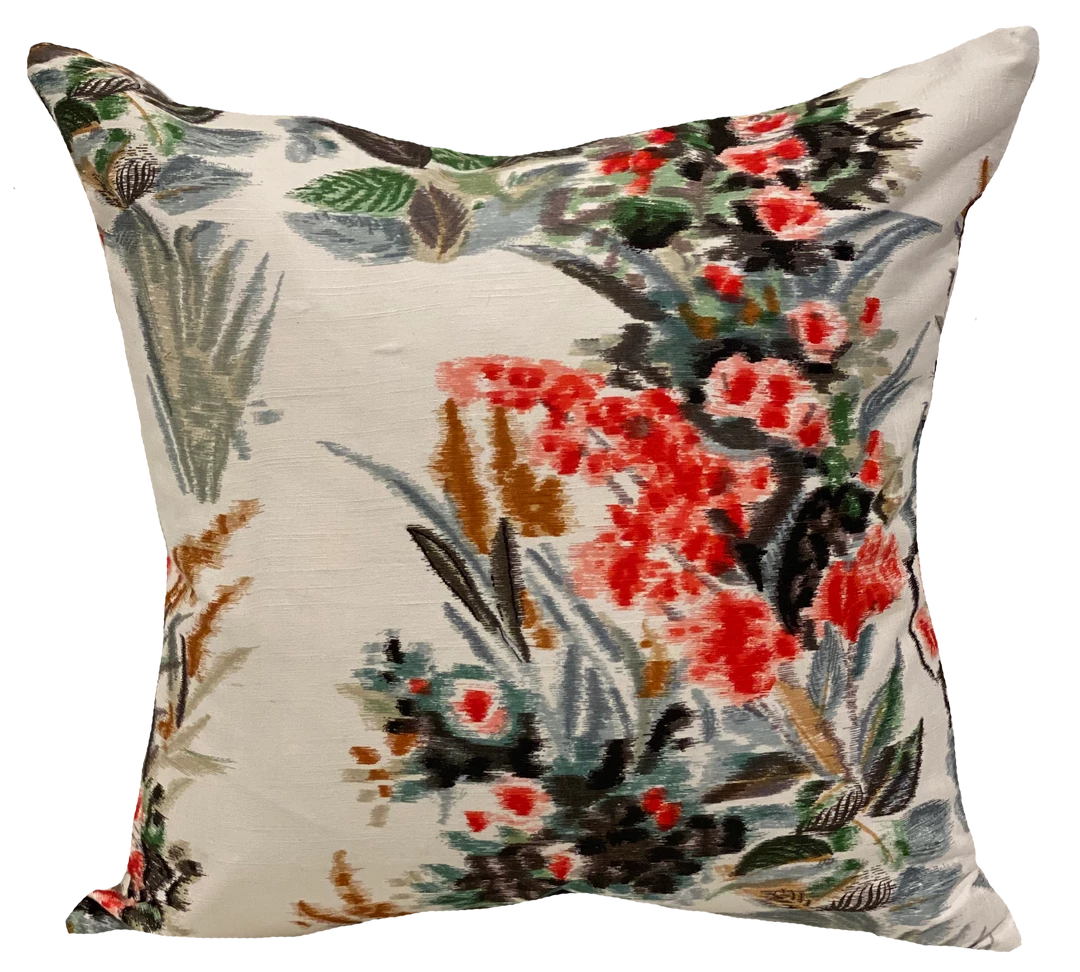 Hand block printed and hand screened on silk or linen, Tulu Textiles are made in India, where the master craftsmen are for this traditional technique. We recommend purchasing our WMH Premium Feather and Down insert that is 1″ larger than the cover.